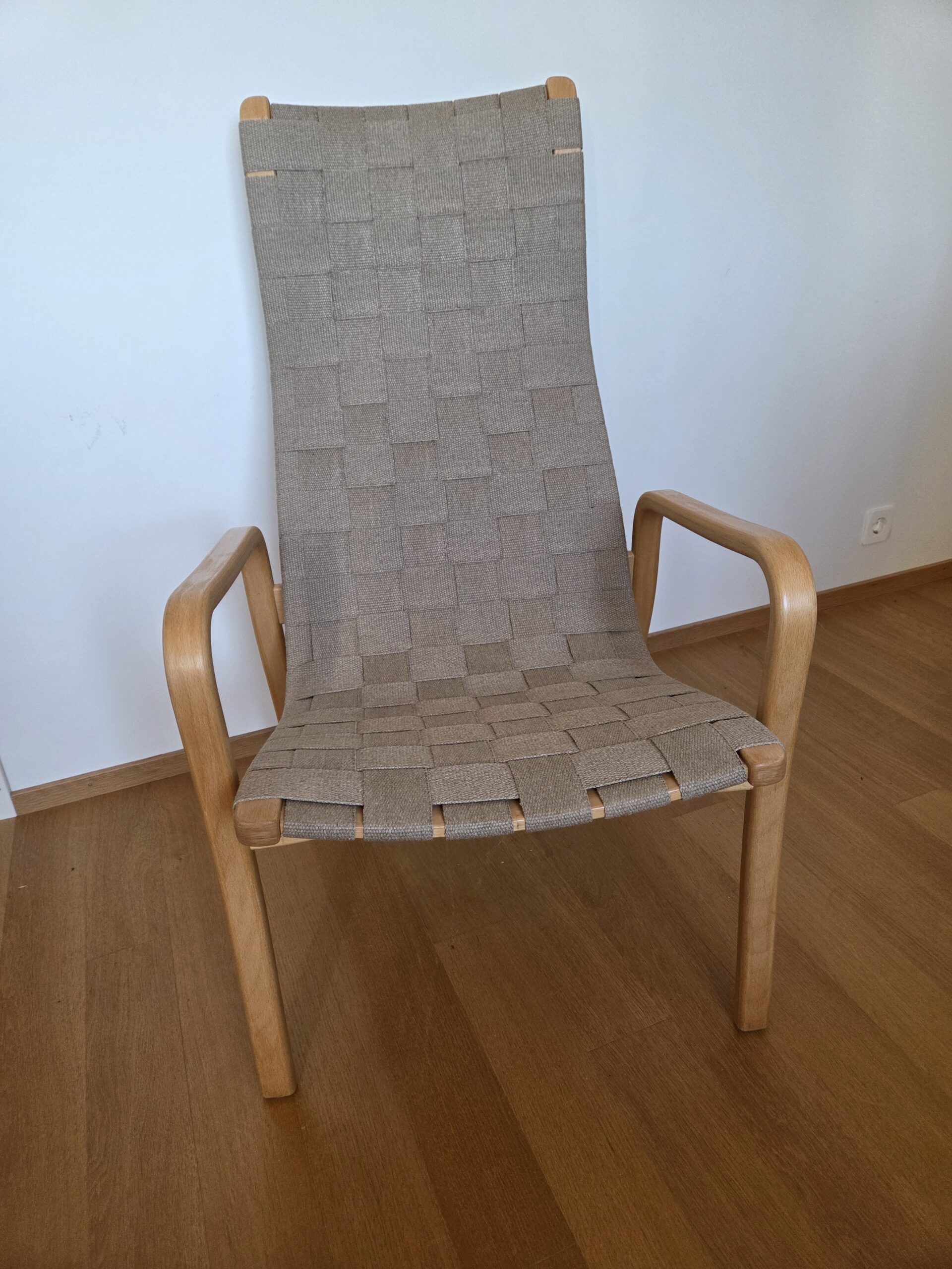 Höga varianten av Bruno Mathssons klassiska fåtölj Eva.